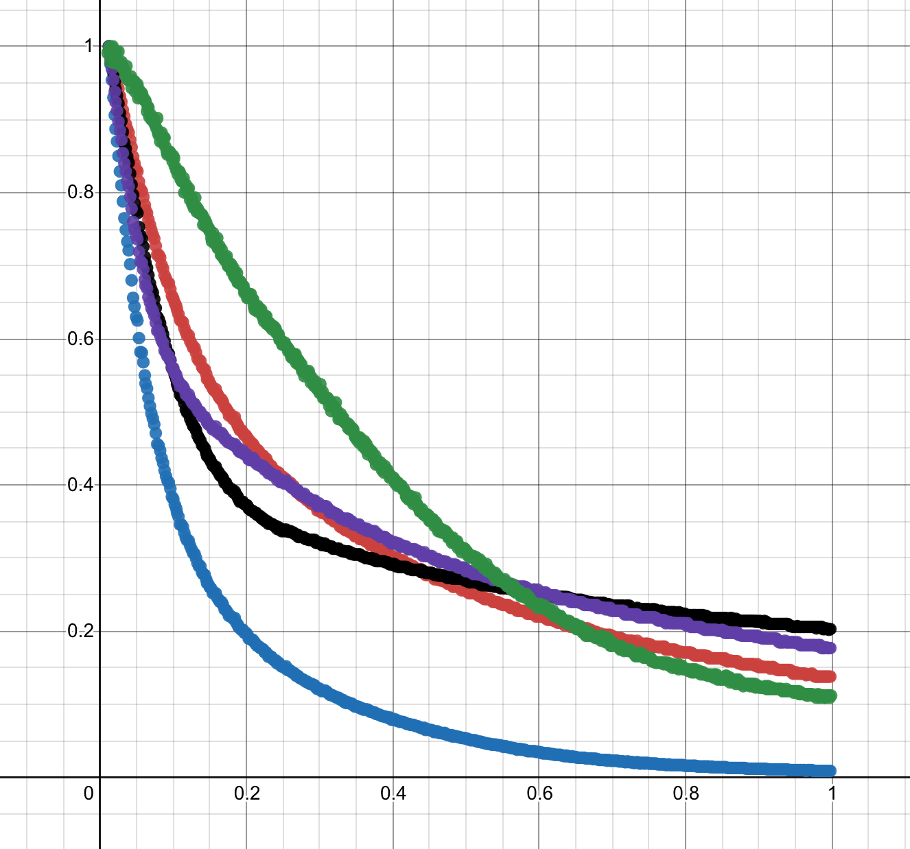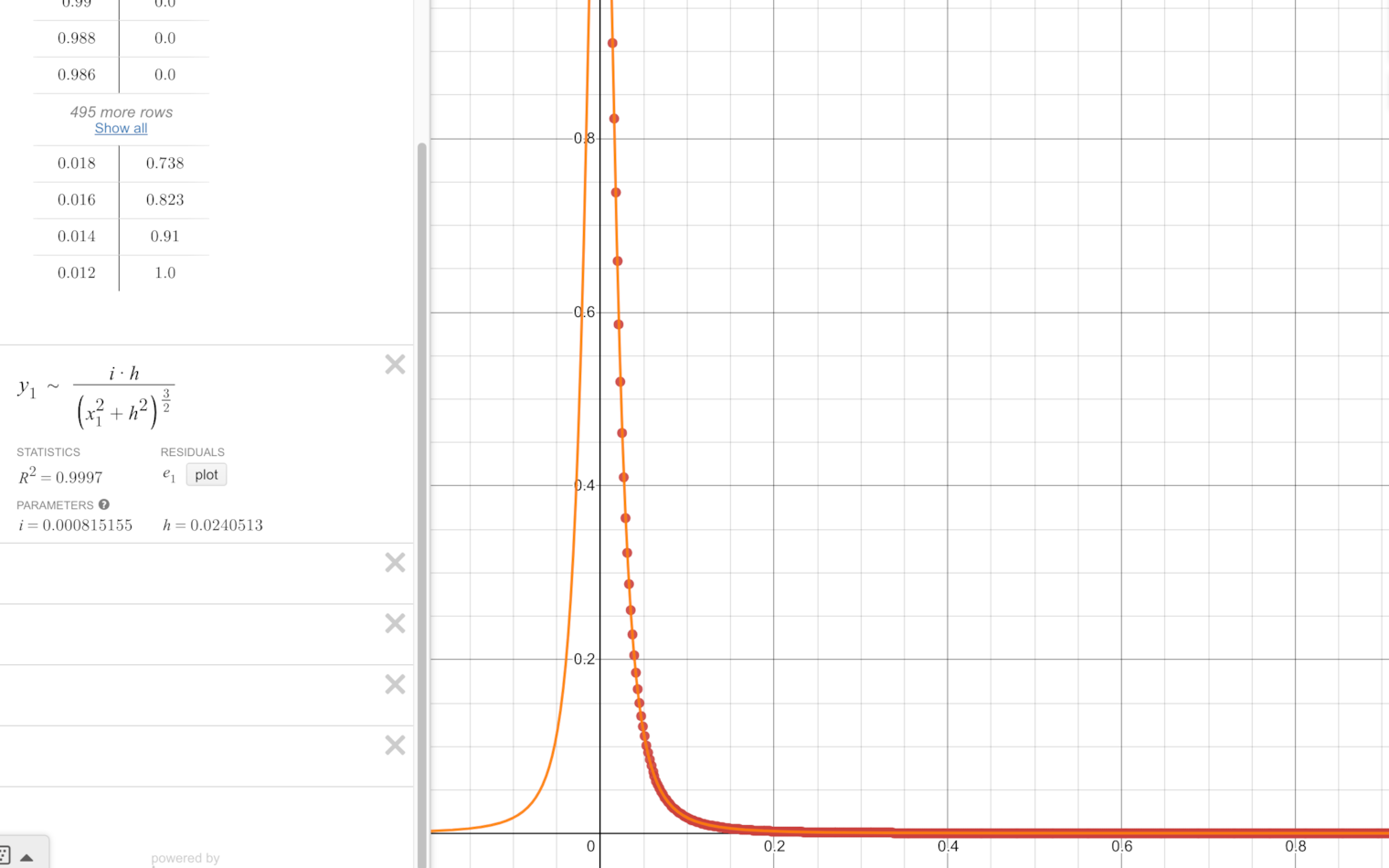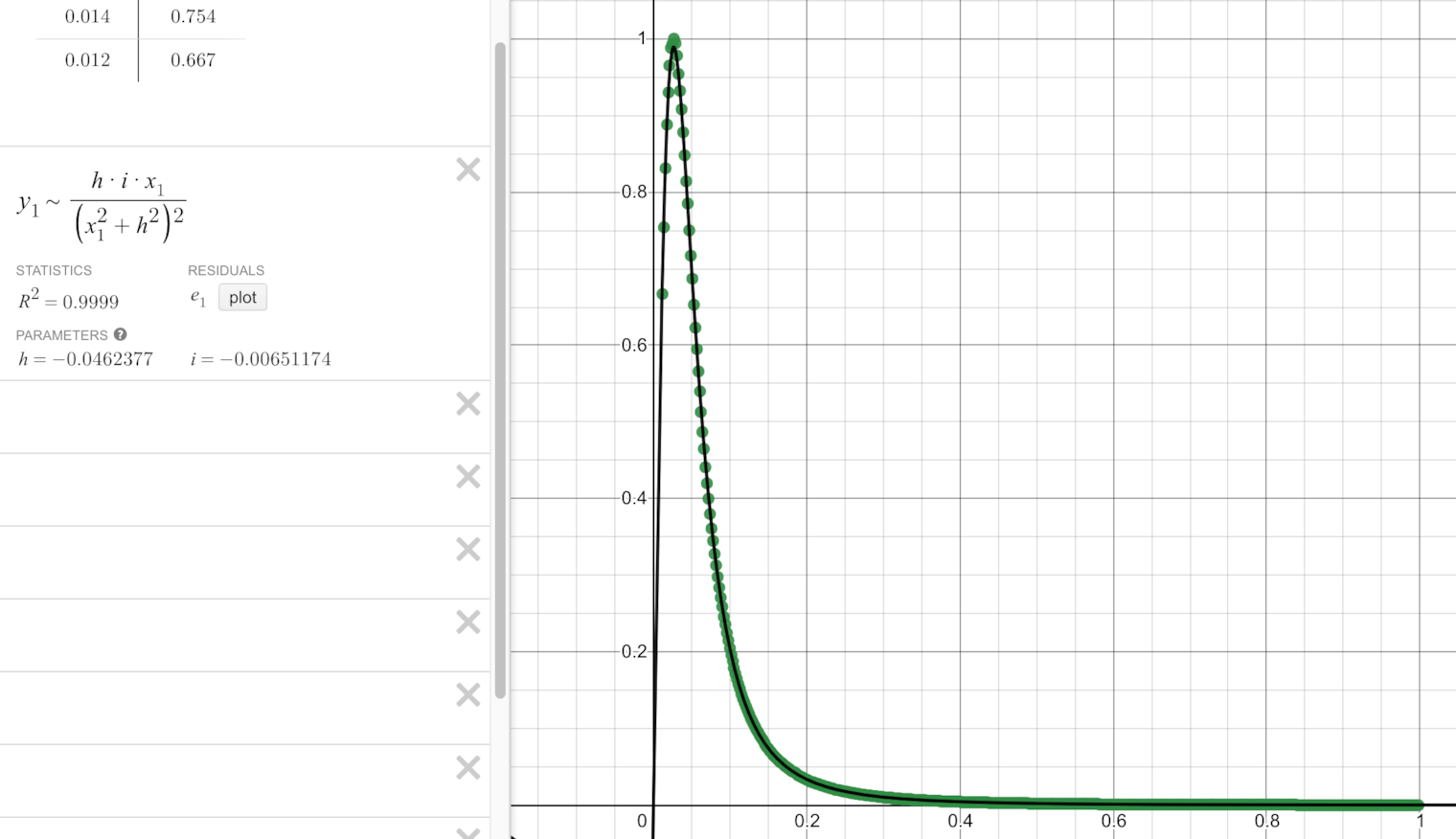 Desmos has an amazing curve-fitting / non-linear regression tool, let's see what kind of curve we can fit on our data.